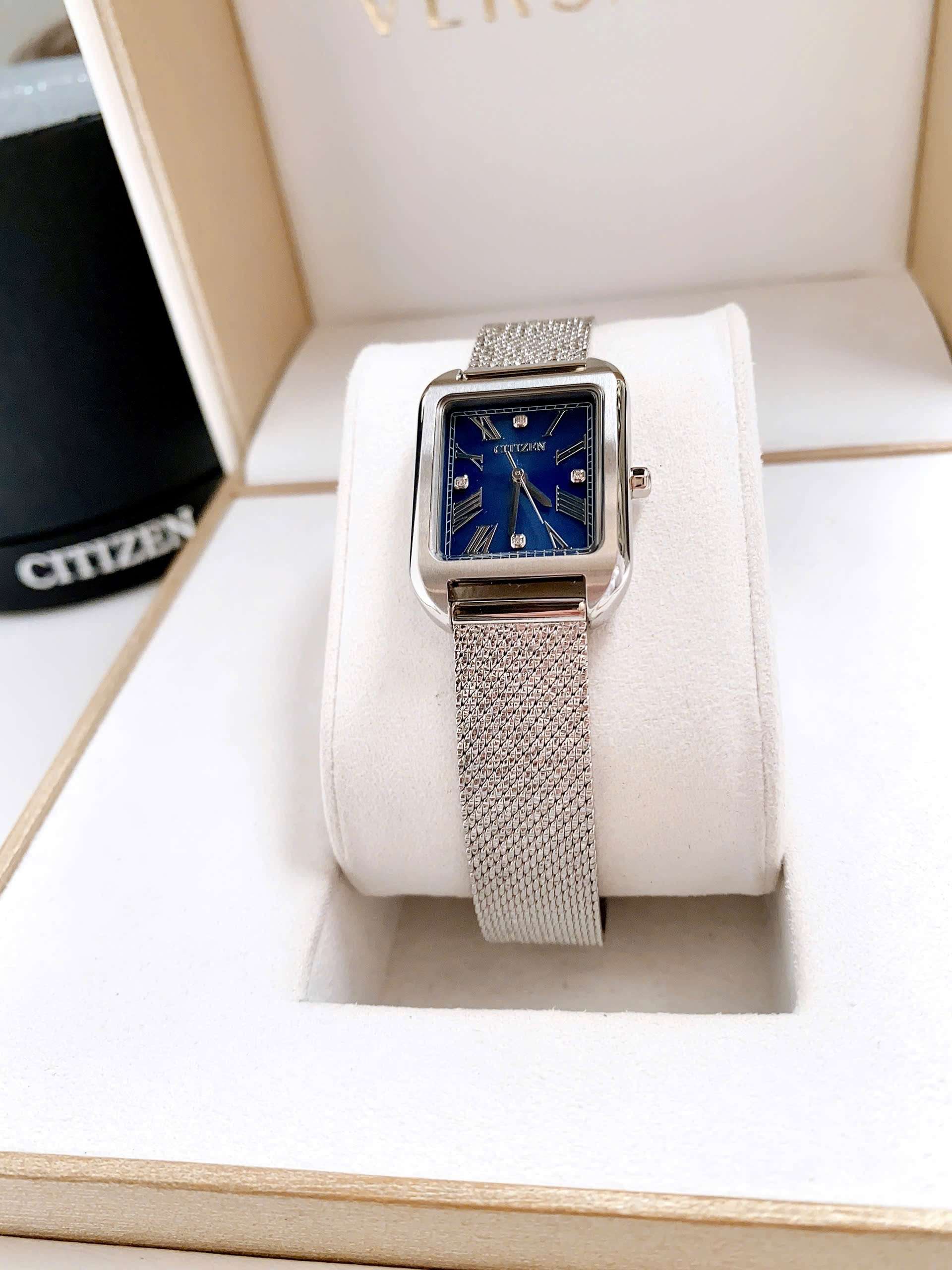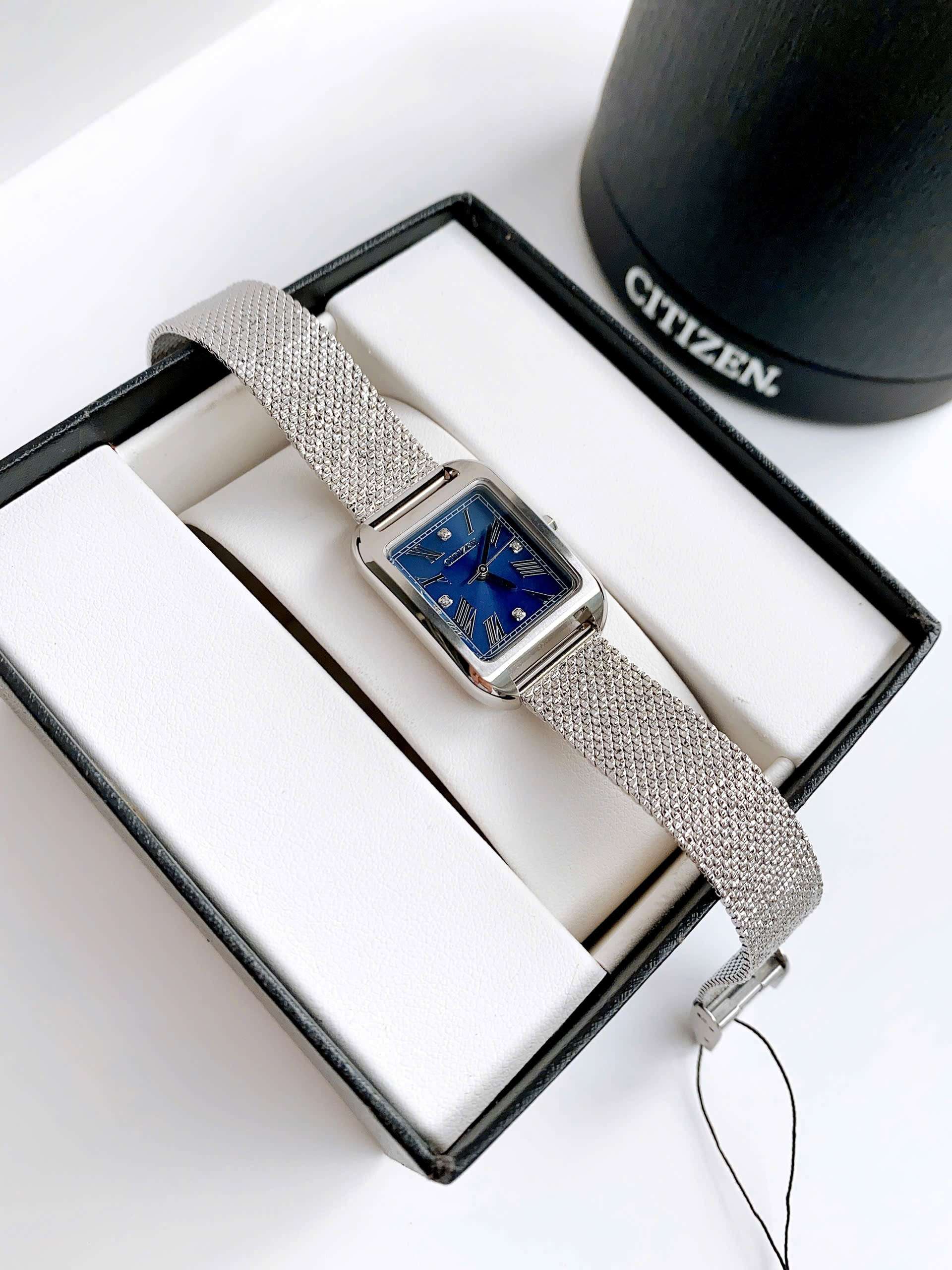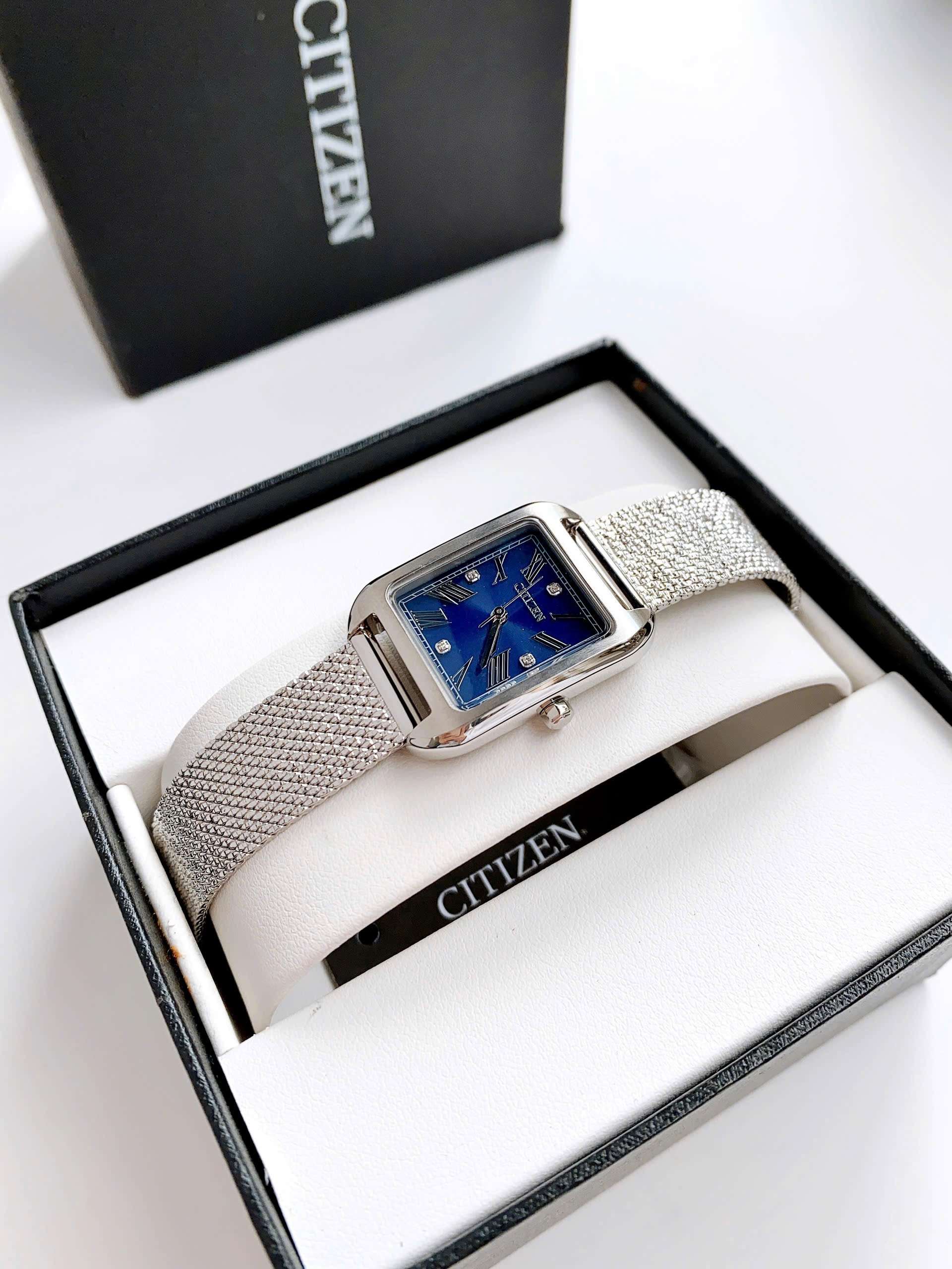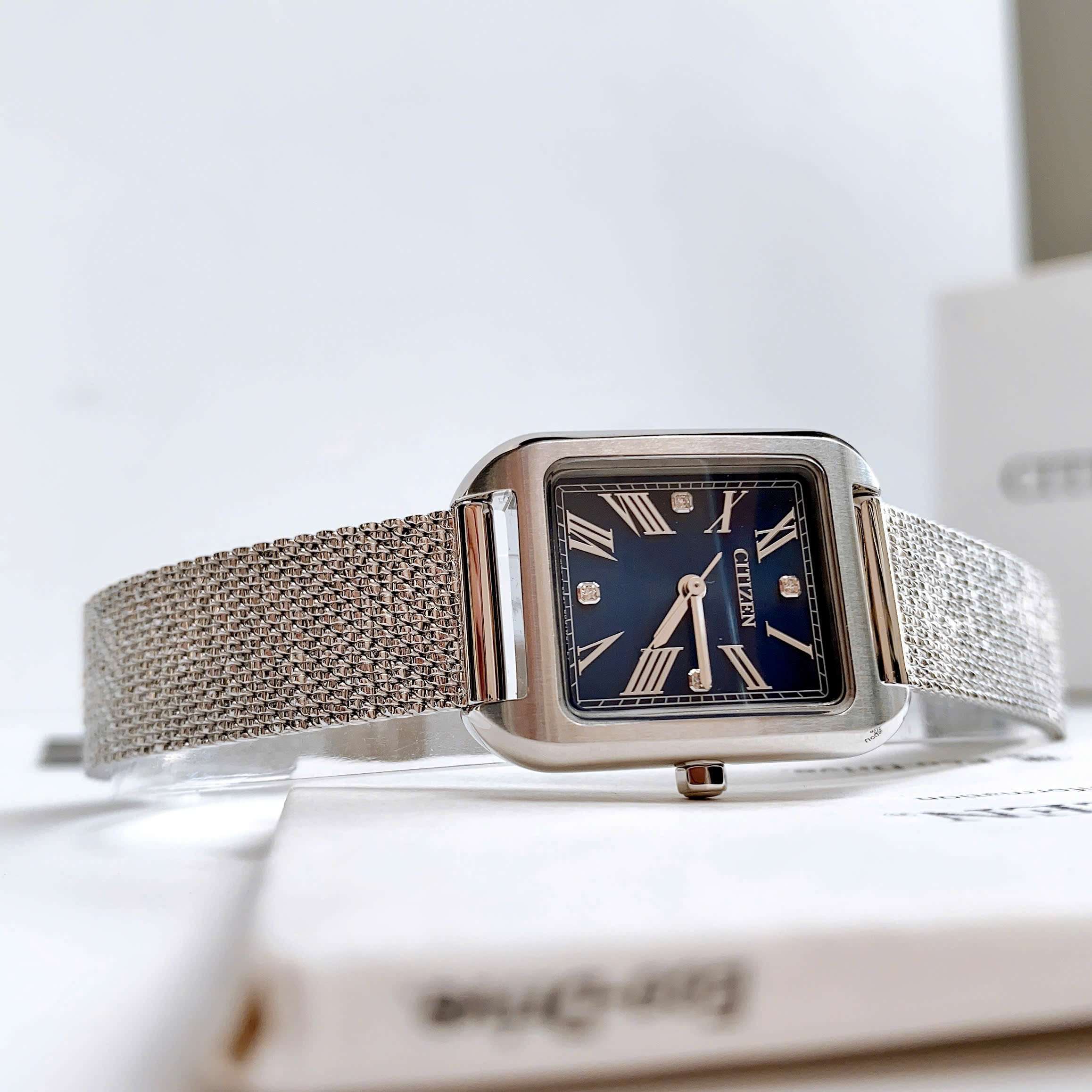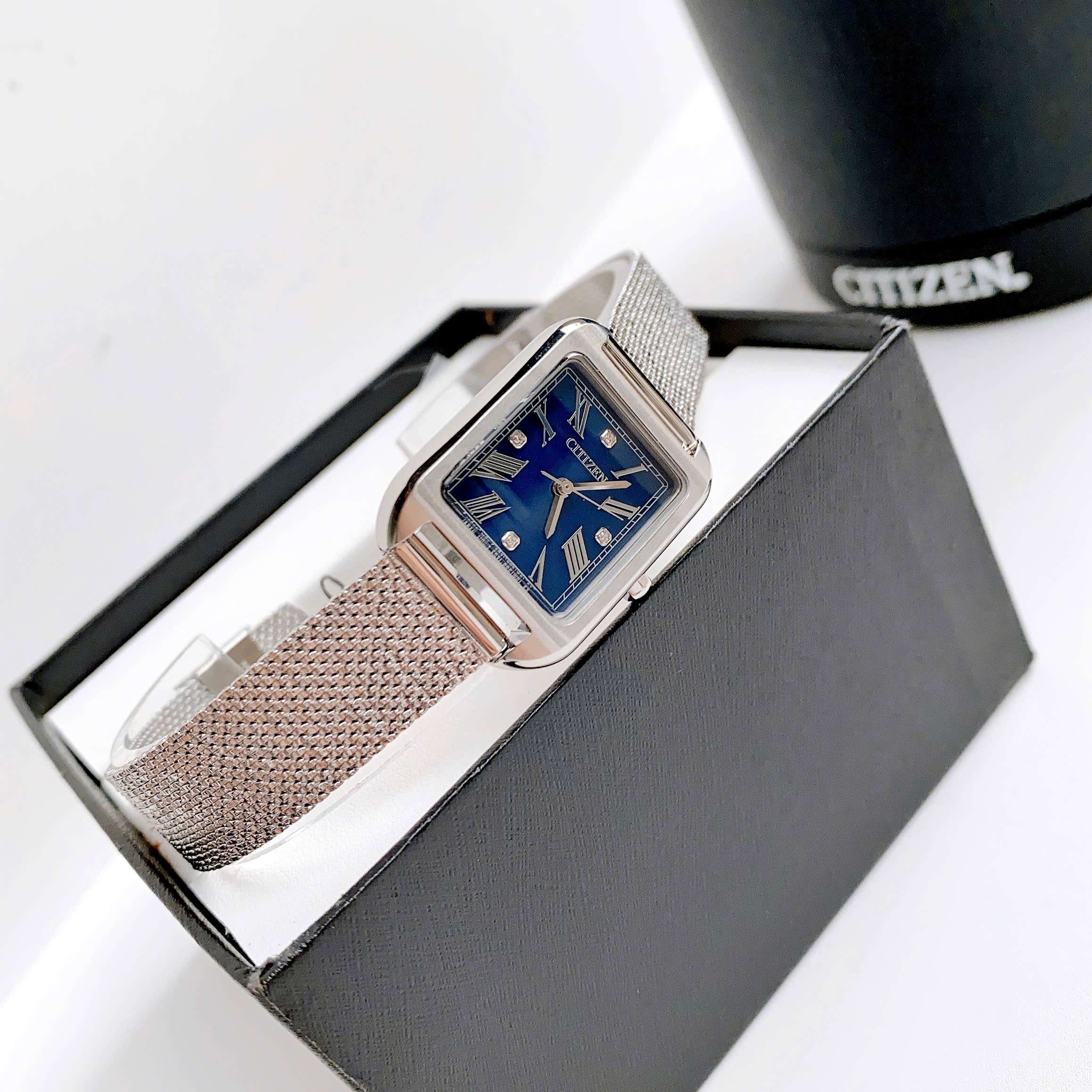 Đồng Hồ Nữ Citizen EW5597-63L Eco Drive Size 22x28 Blue Dial Mặt Chữ Nhật