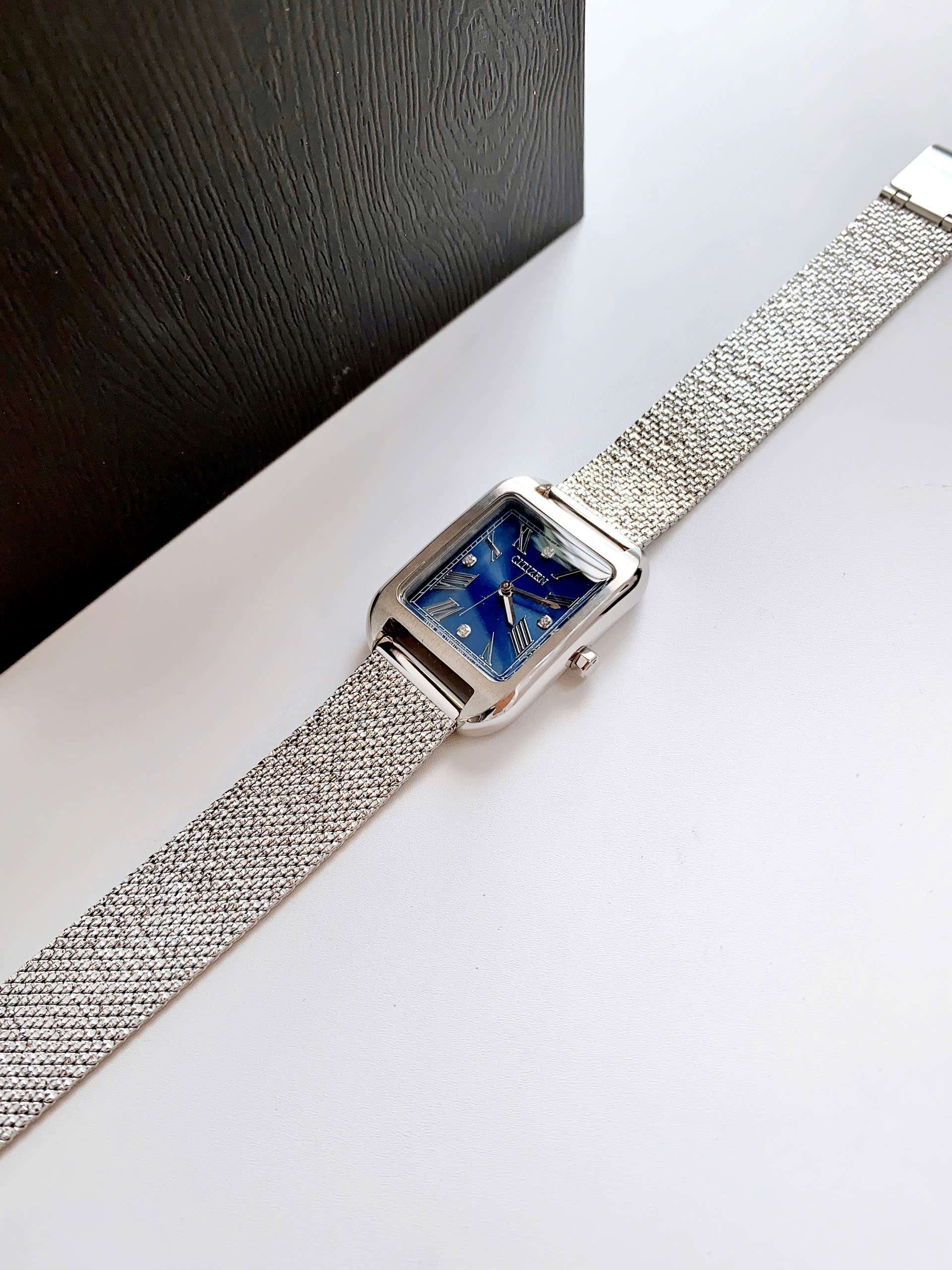 - Mặt vuông xinh xắn với số giờ điểm đính đá lấp lánh
