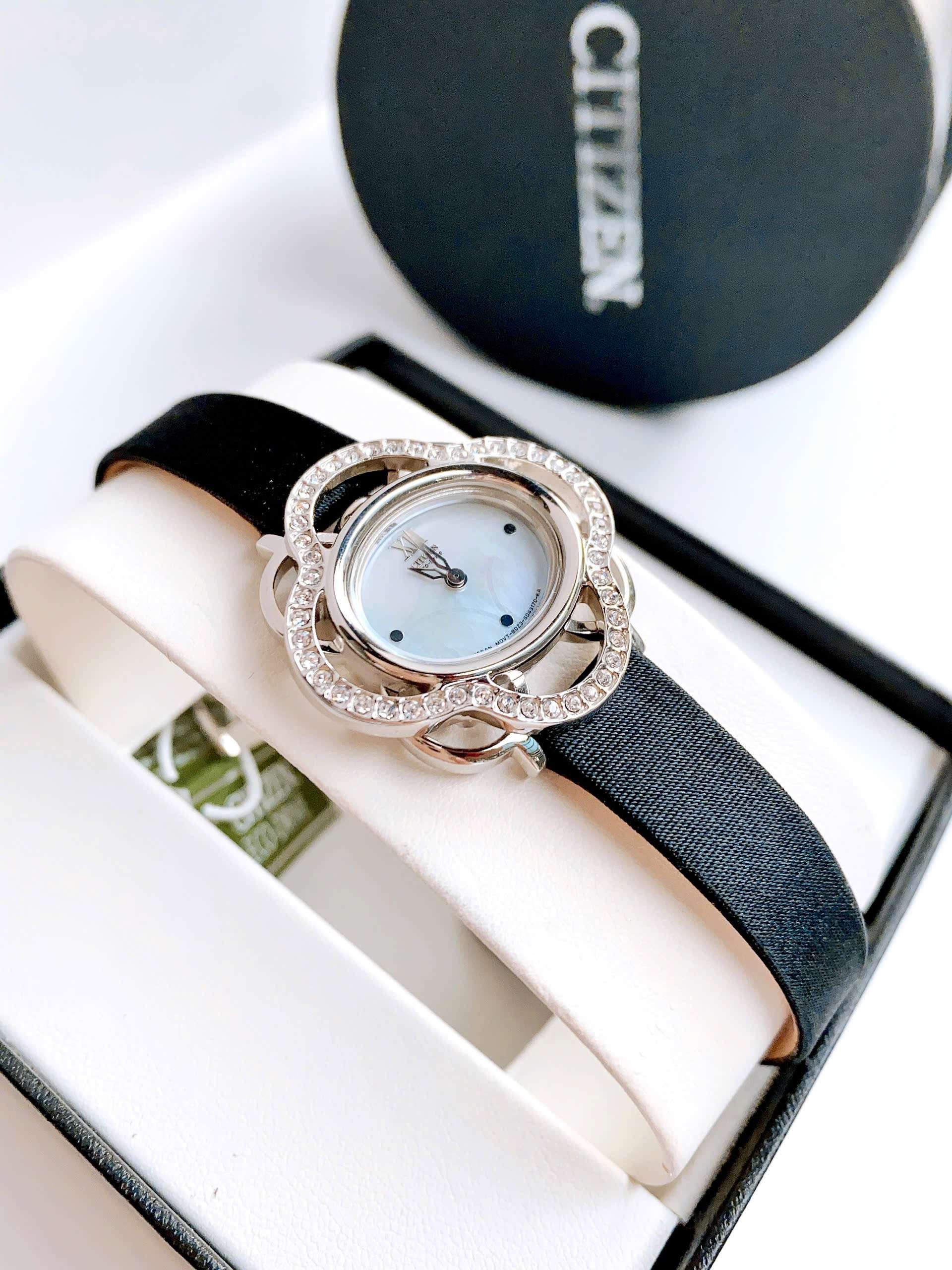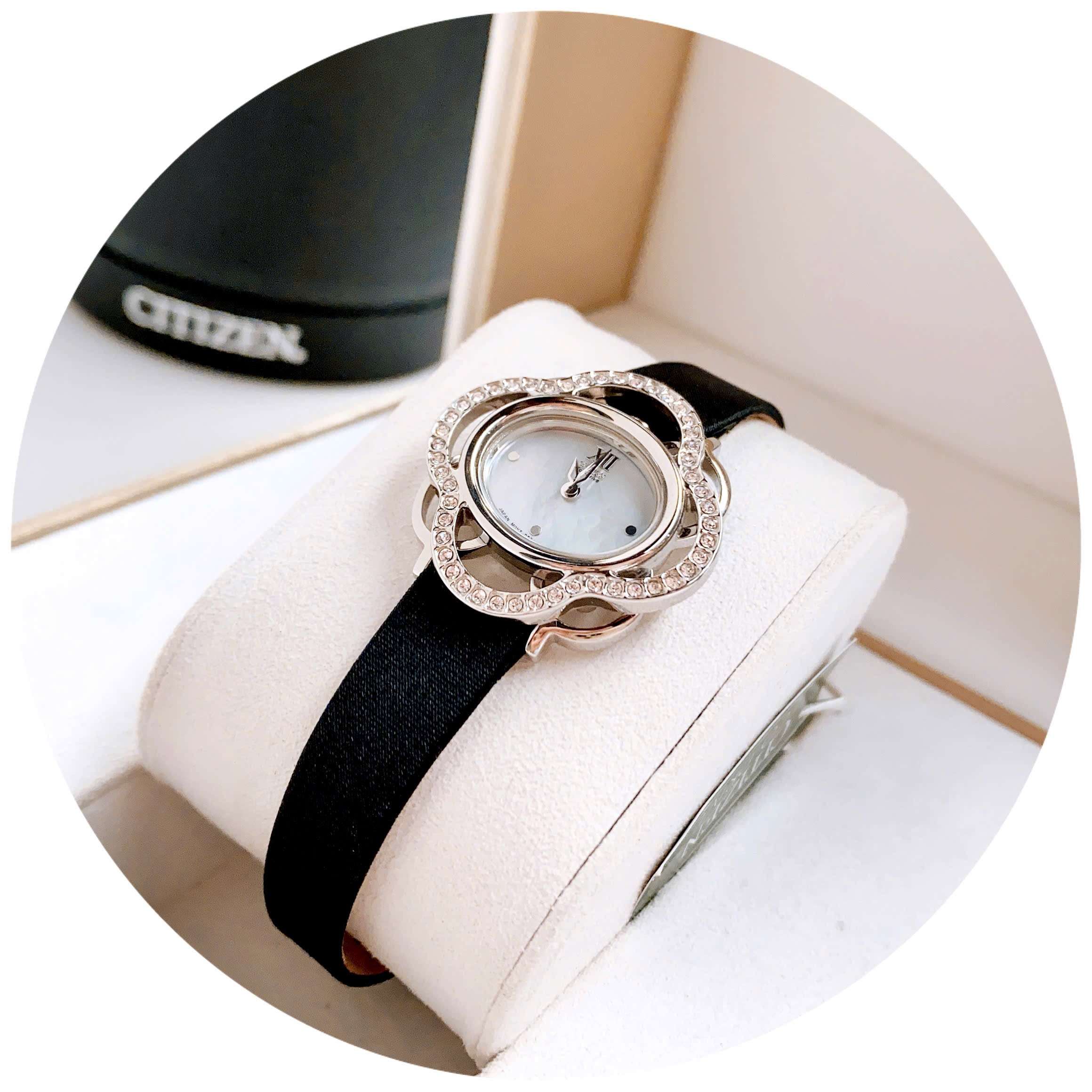 Đồng Hồ Nữ Citizen EW8970-06D Eco Drive Size 32 Viền Xếp Cánh Hoa Swarovski