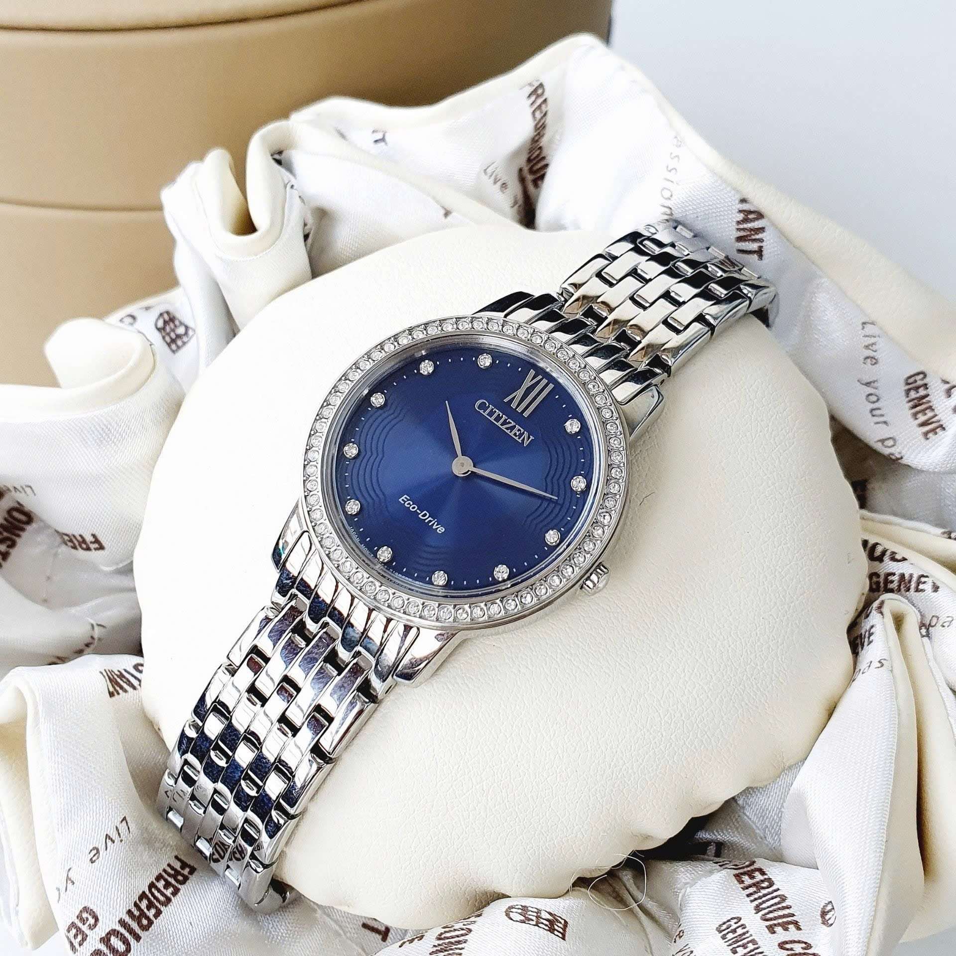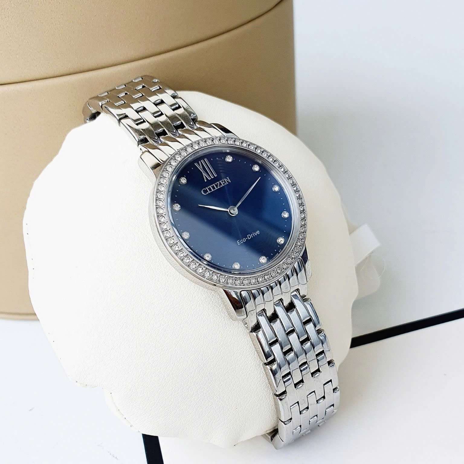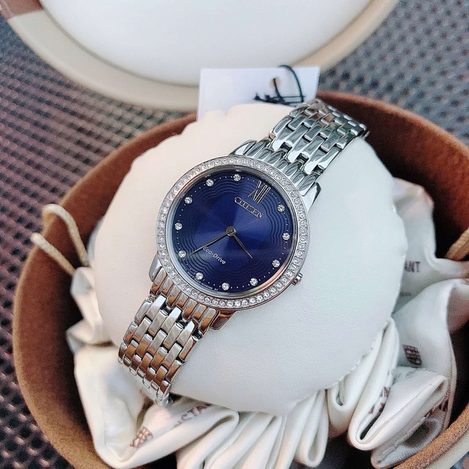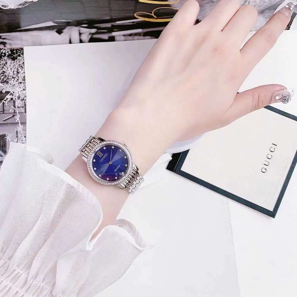 Đồng Hồ Nữ Citizen EX1480-58L Eco Drive Size 29 Blue Sapphire Dial Swarovski
