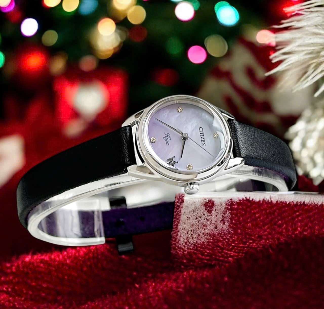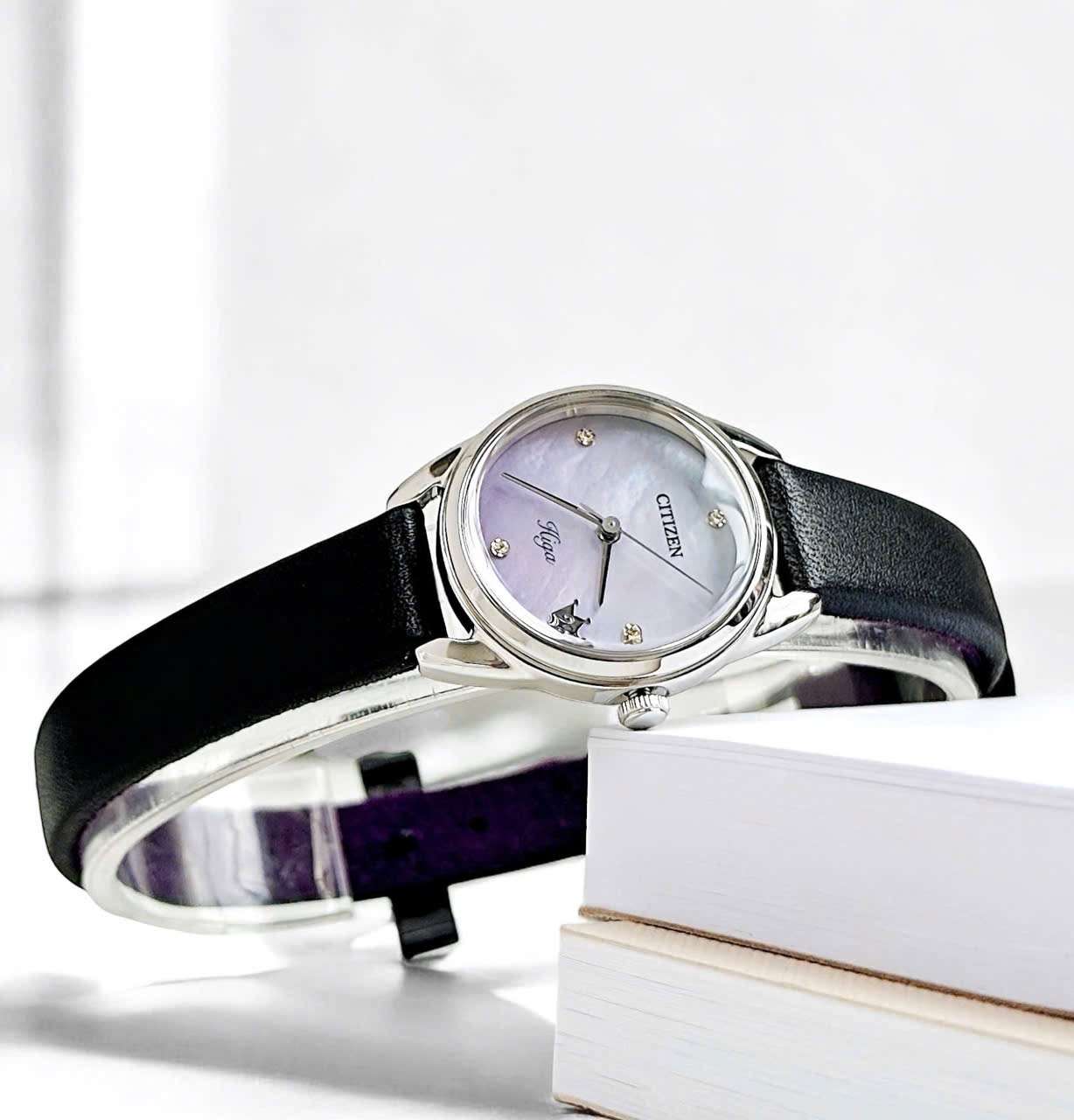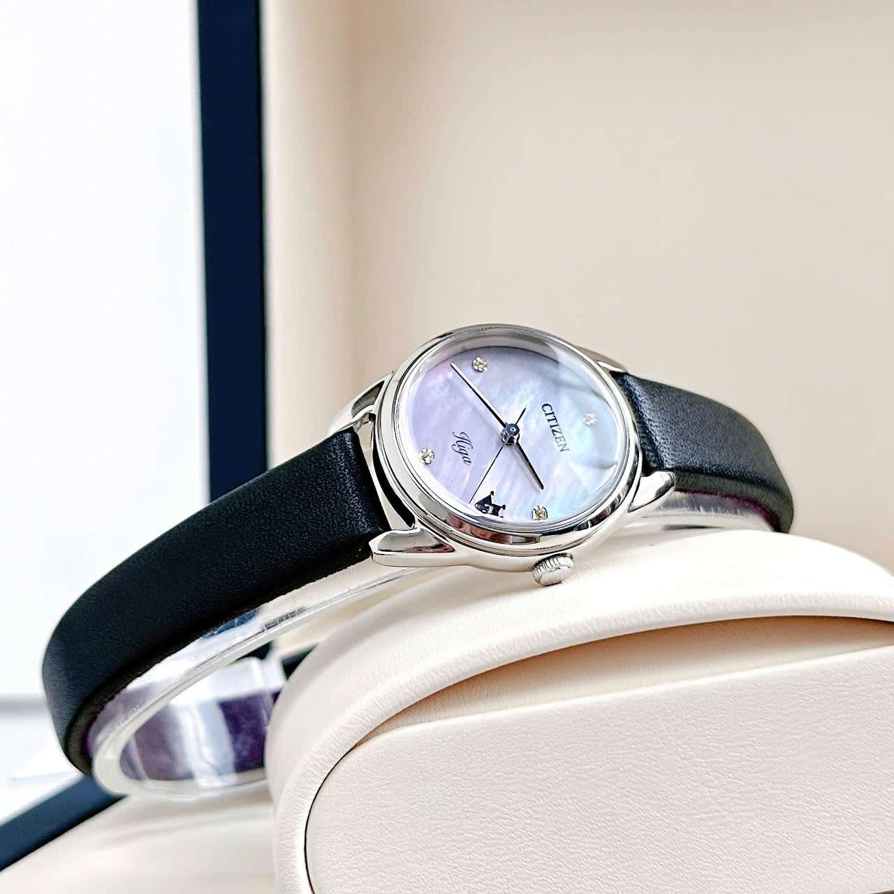 Đồng Hồ Nữ Citizen Rikkai Size 27 Purple Dial Dây Da Đen Độc Đáo Tinh Tế