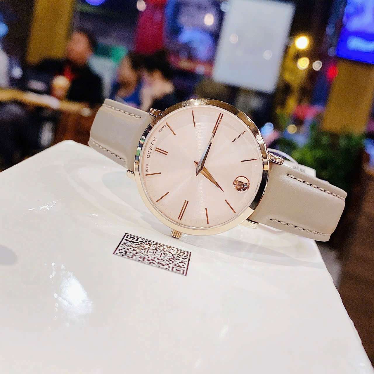 Đồng Hồ Nữ Movado 0607375 Quartz Size 40 Ultra Slim Beige