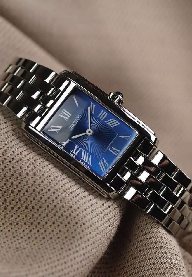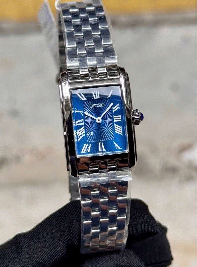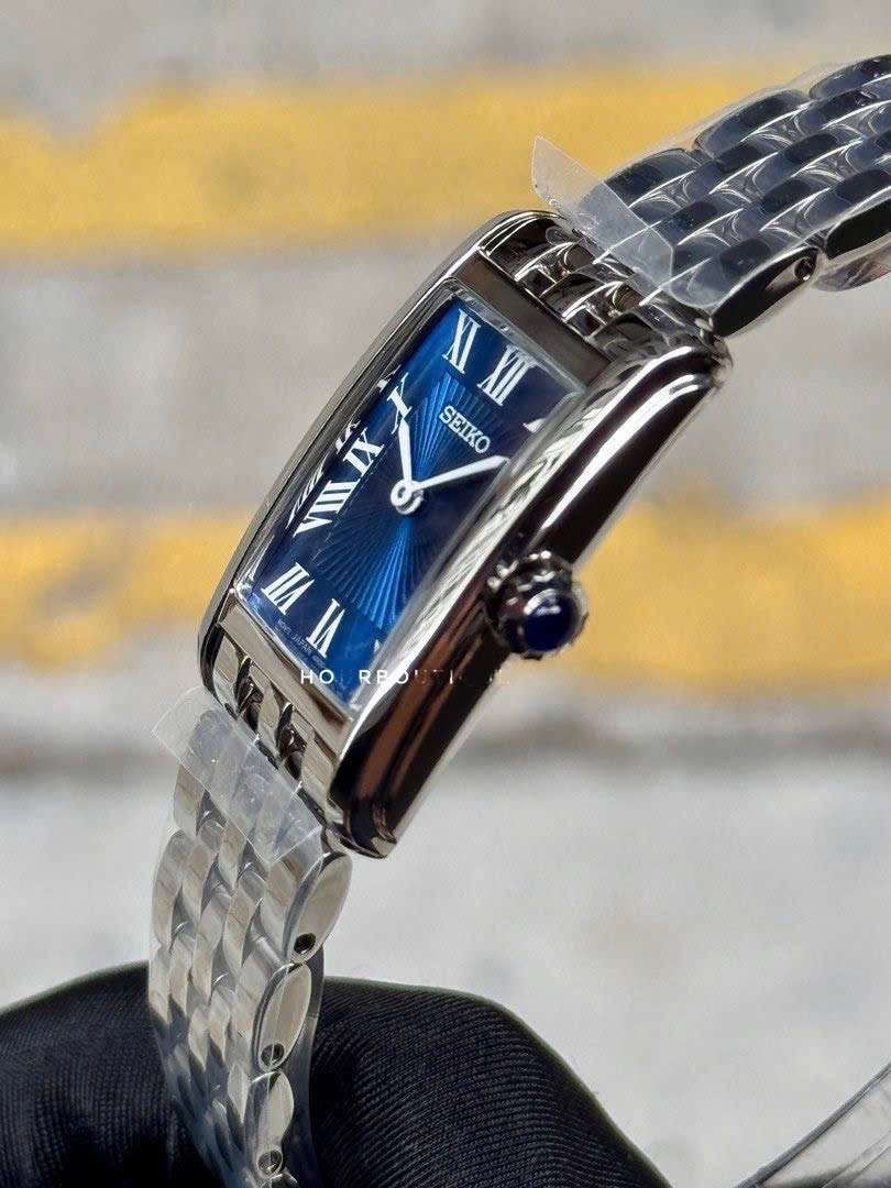 - Mặt số xanh dương sang trọng, tạo nên vẻ hiện đại và nữ tính