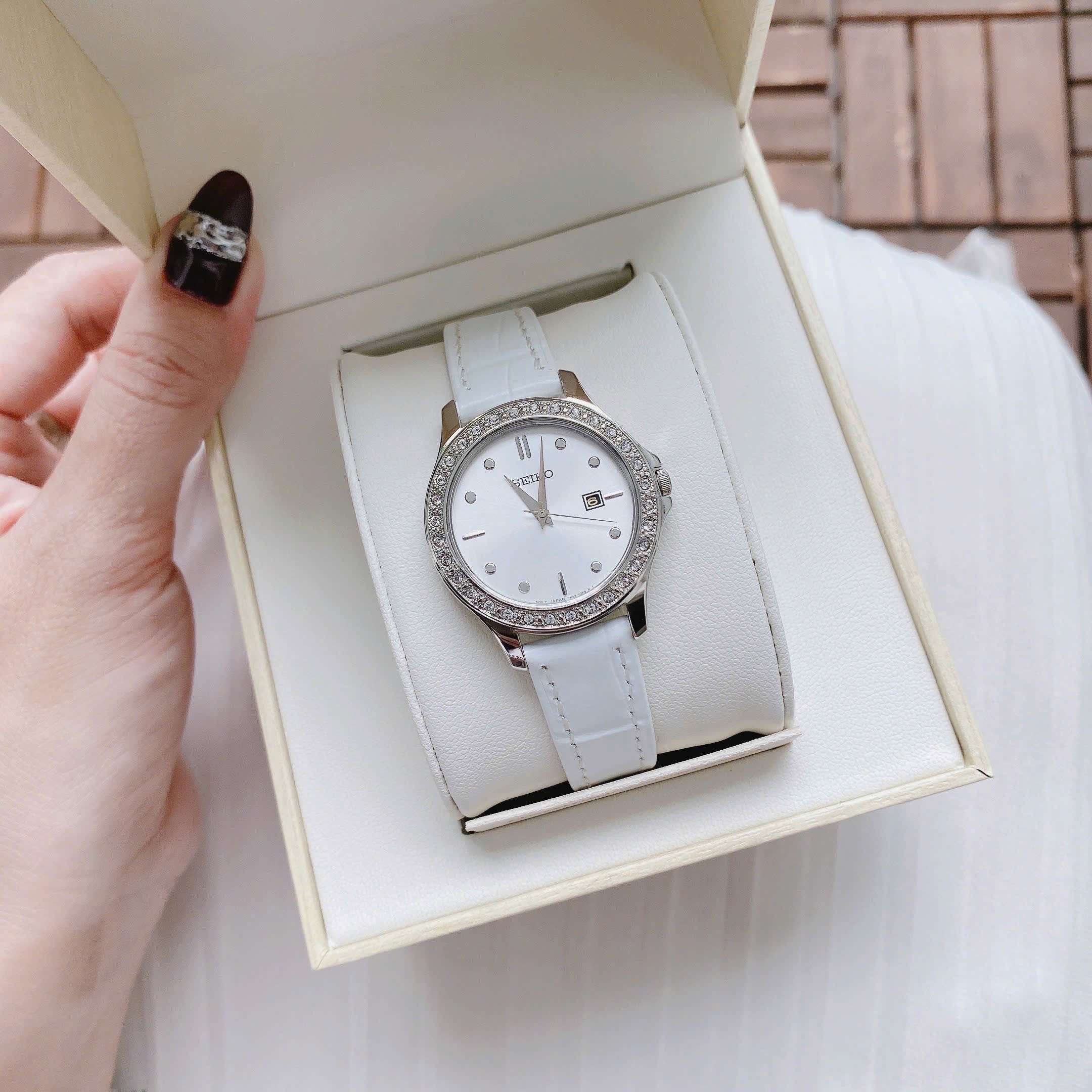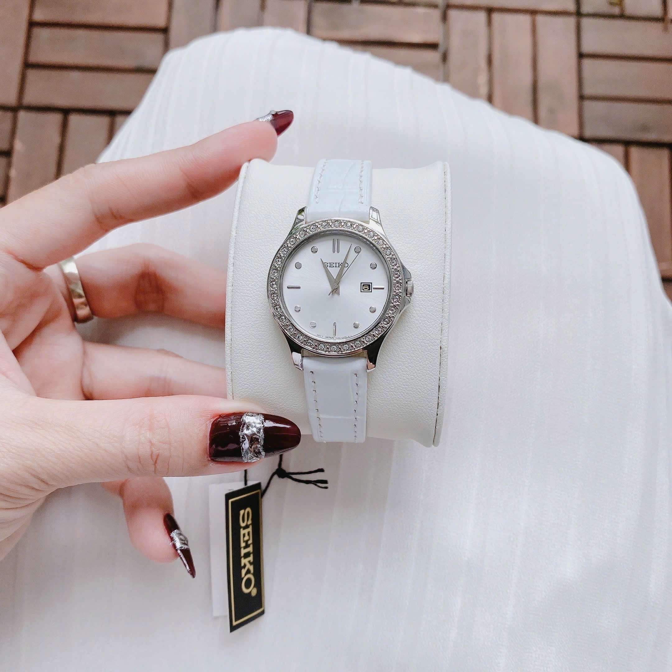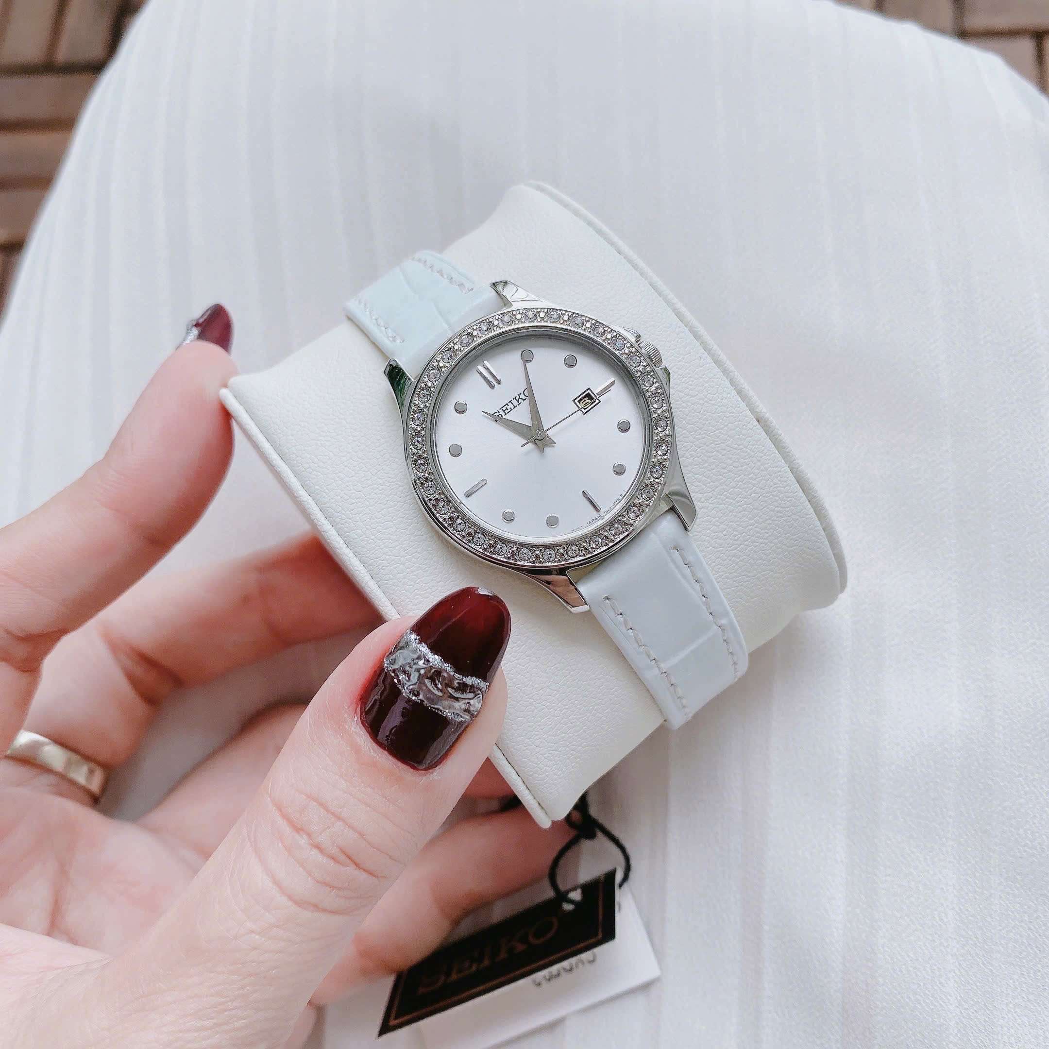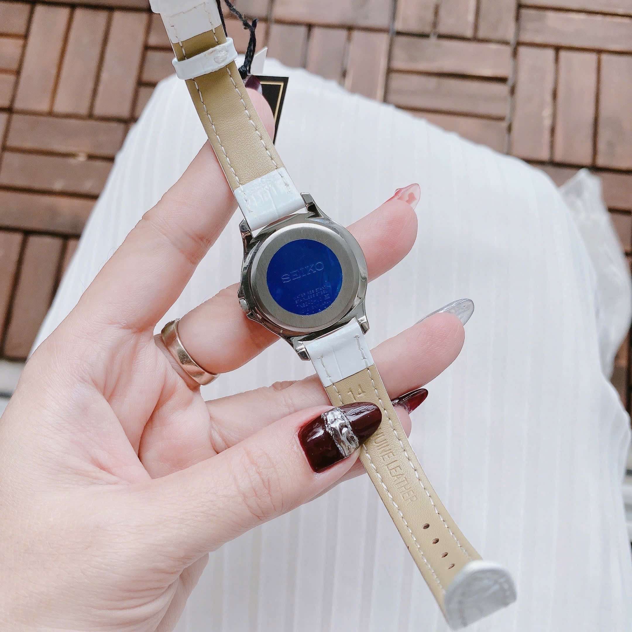 Đồng Hồ Nữ Seiko SXDF93 Quartz Size 30 White Swarovski Dây Da Trắng Xinh Xắn