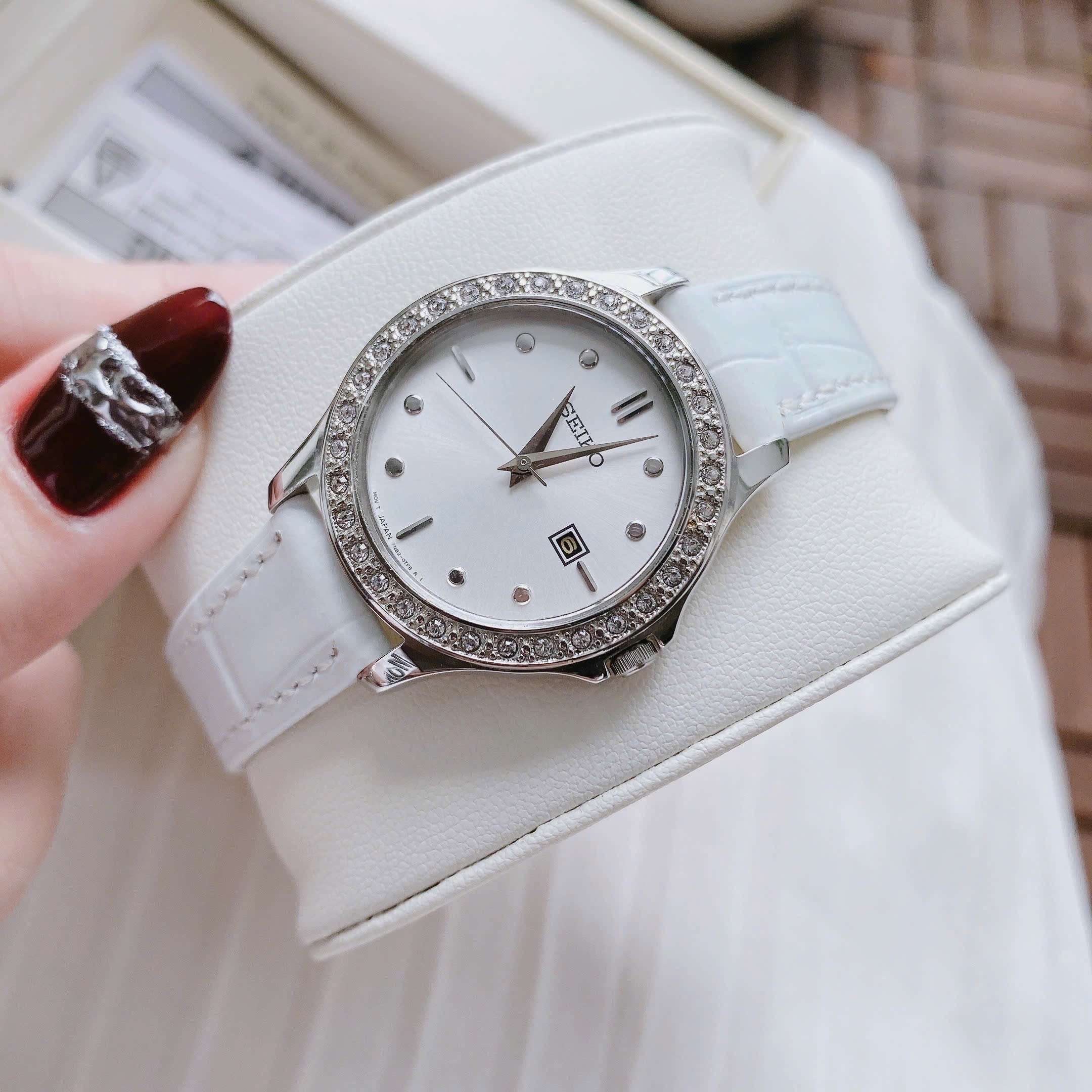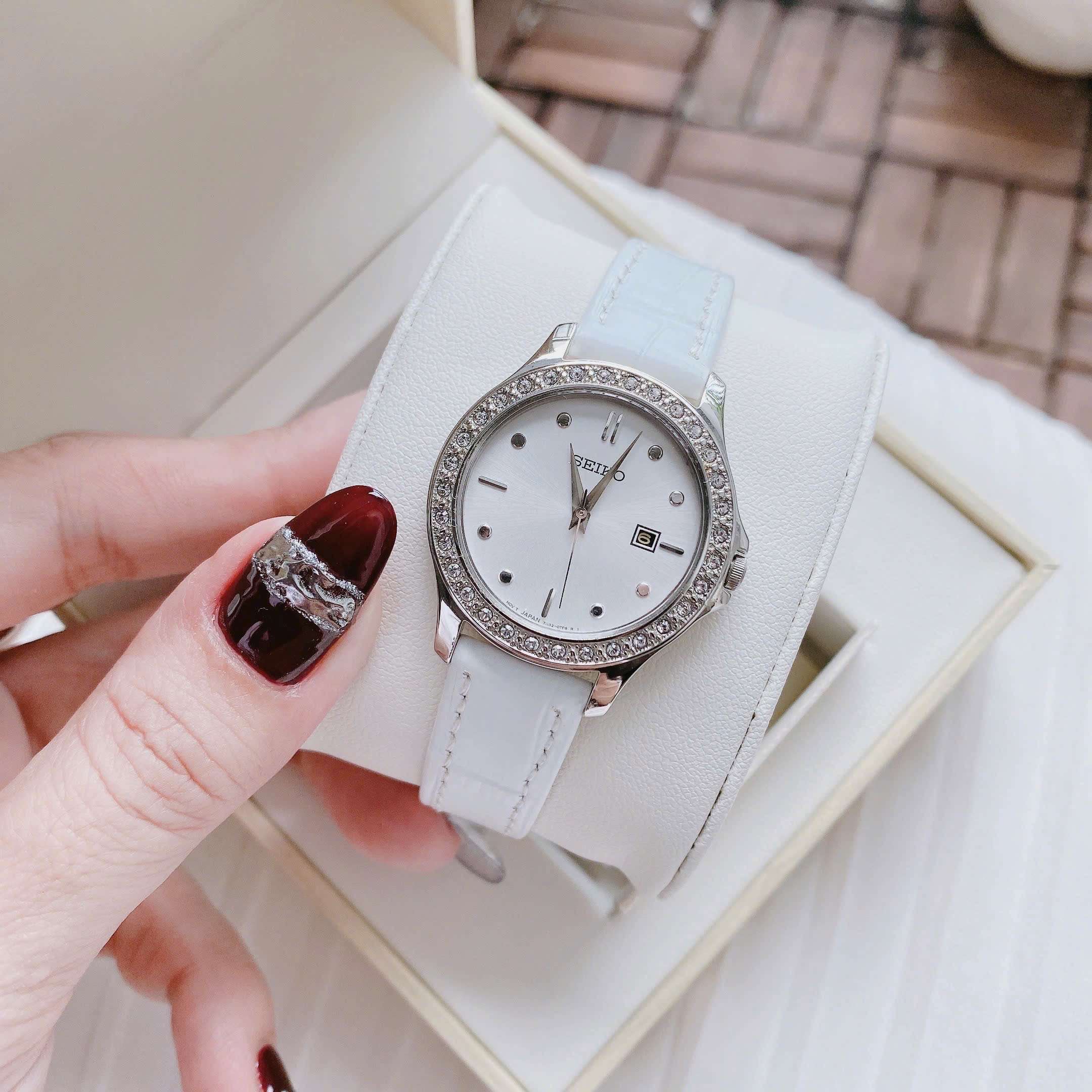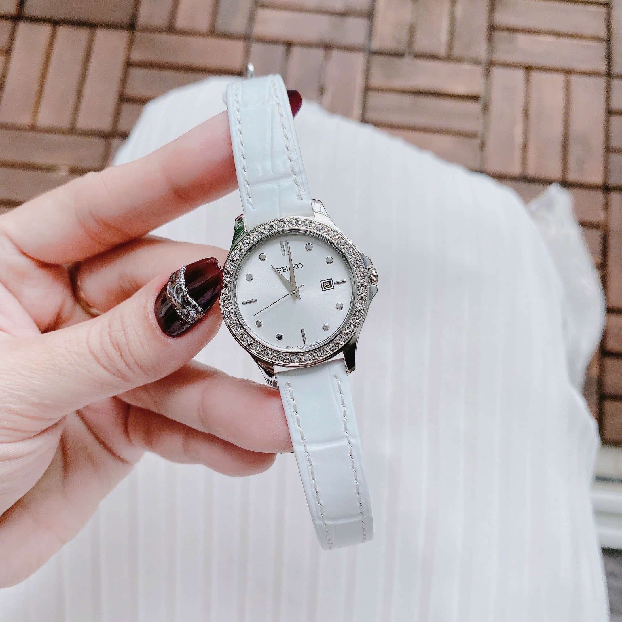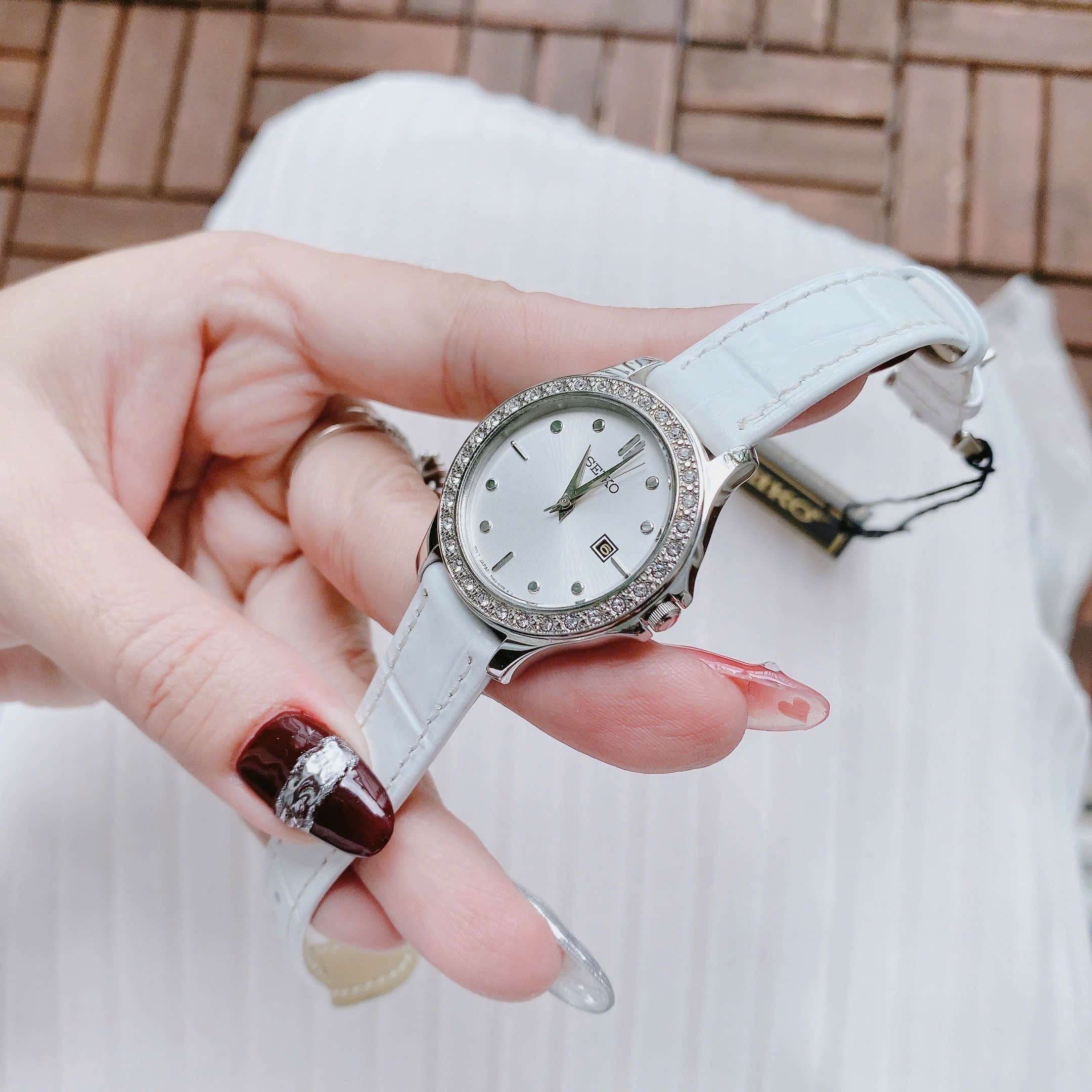 Đồng Hồ Nữ Seiko SXDF93 Quartz Size 30 White Swarovski Dây Da Trắng Xinh Xắn