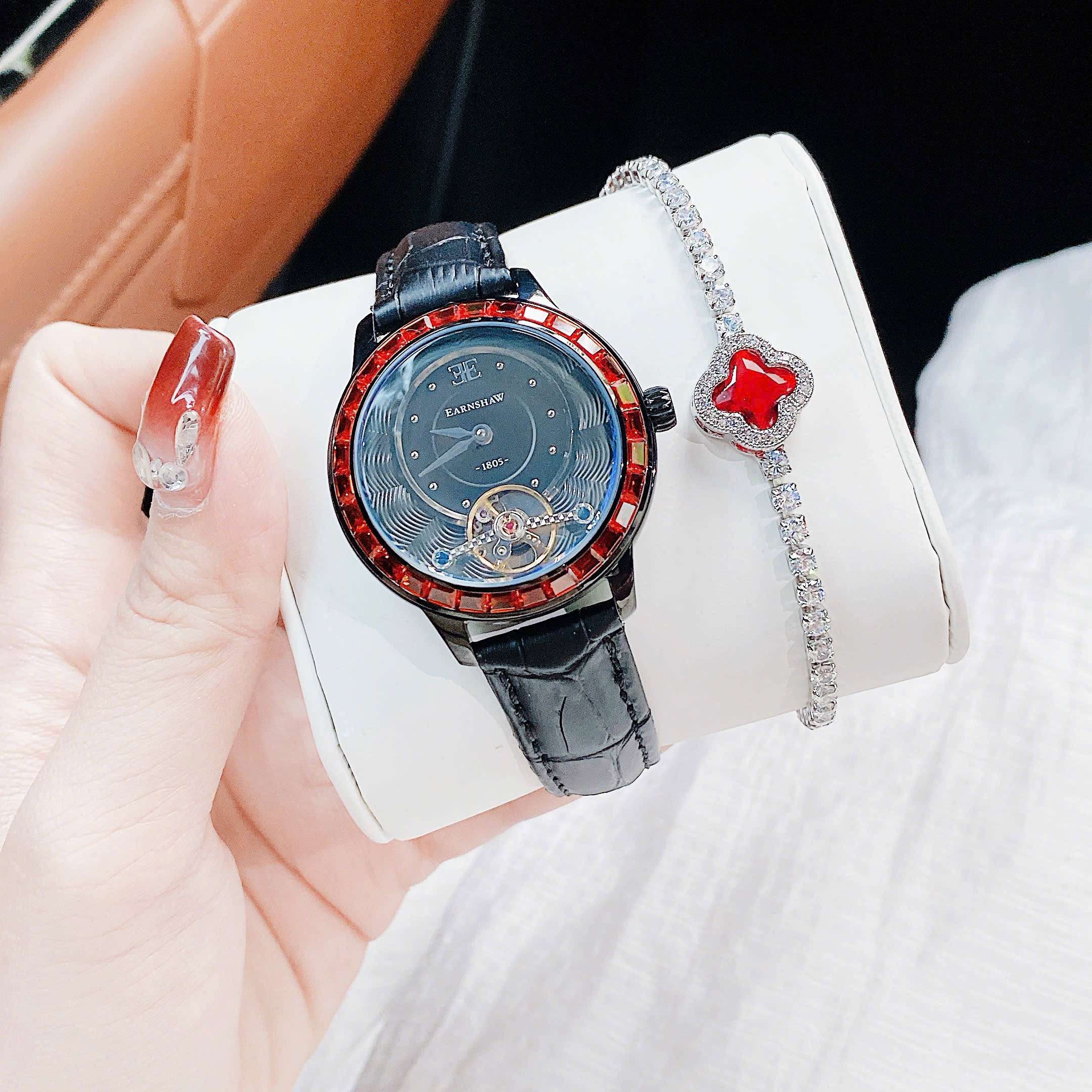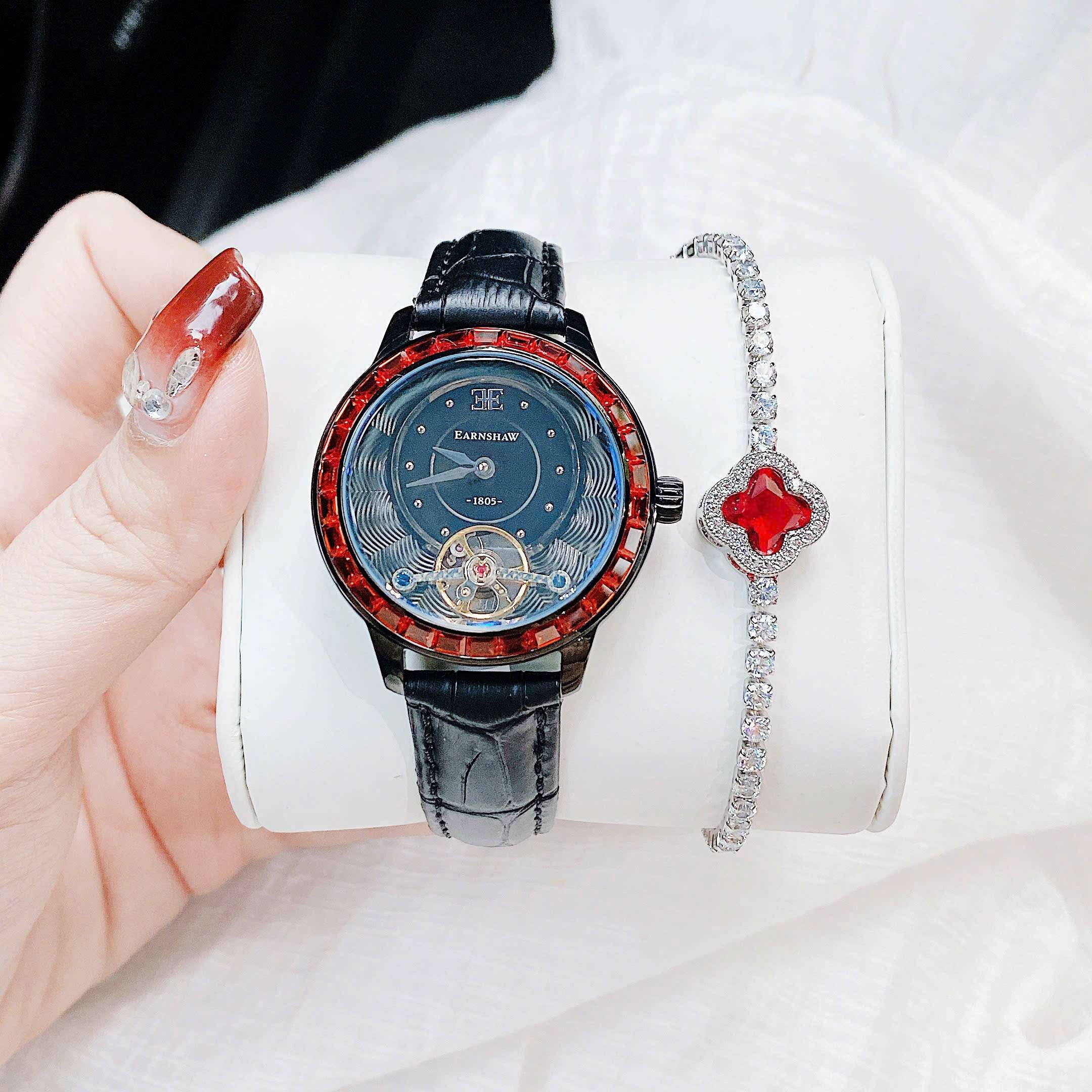 Đồng Hồ Nữ Thomas Earnshaw ES-8057-02 Automatic Size 36 Viền Đá Đỏ