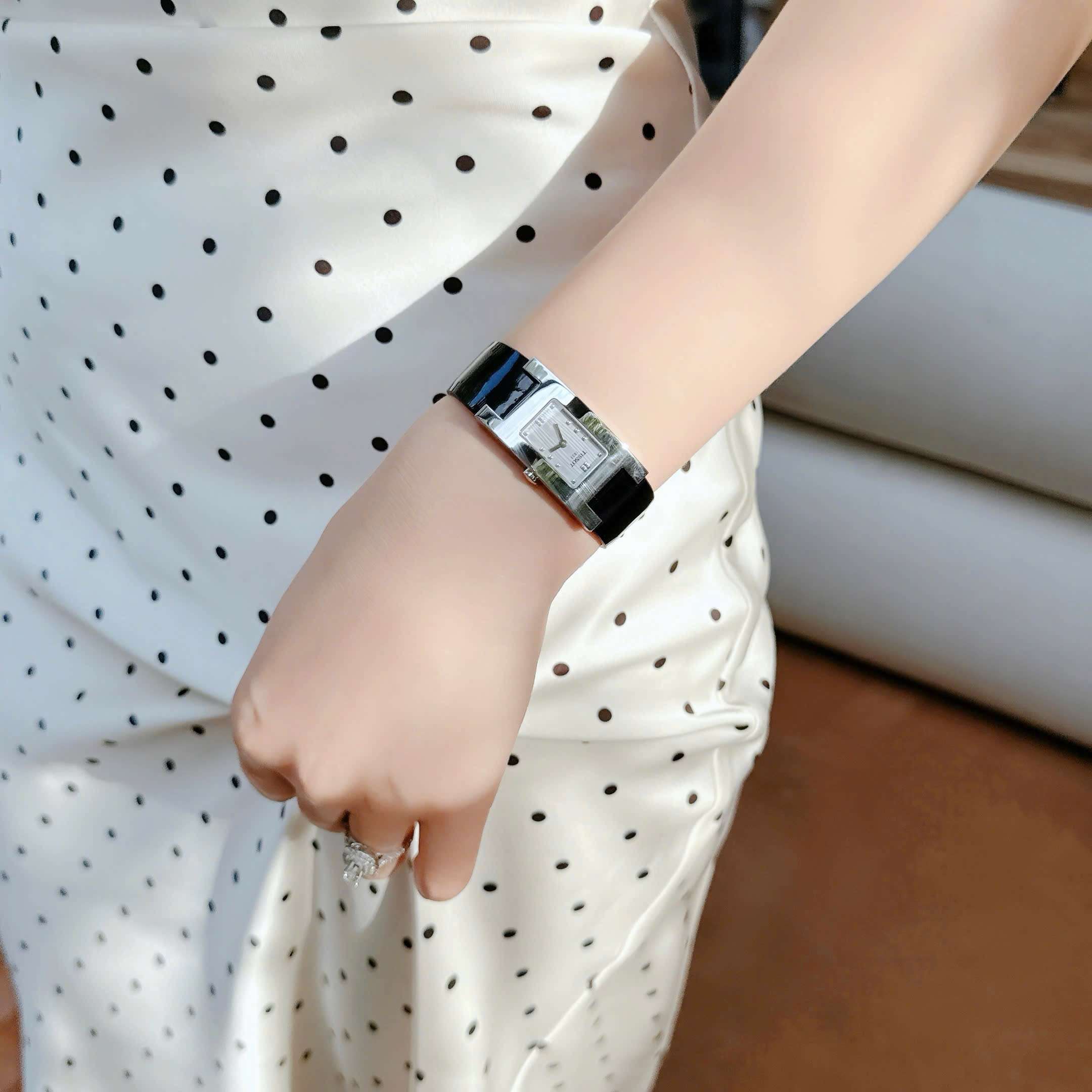 - *Mặt số:* Chữ nhật màu bạc điểm ánh xanh