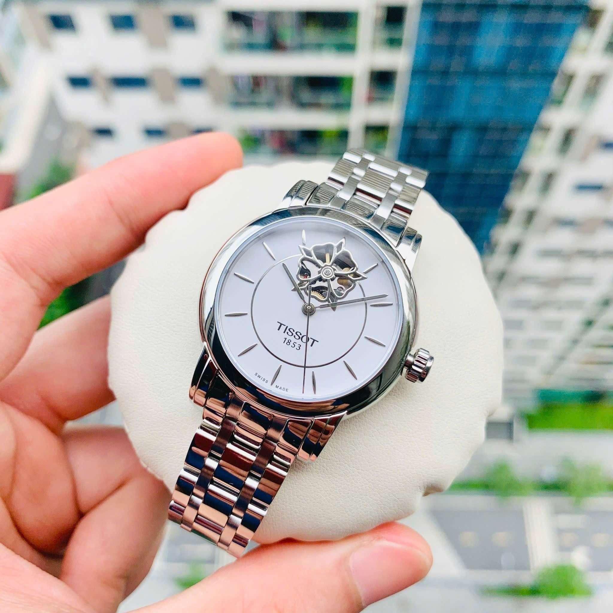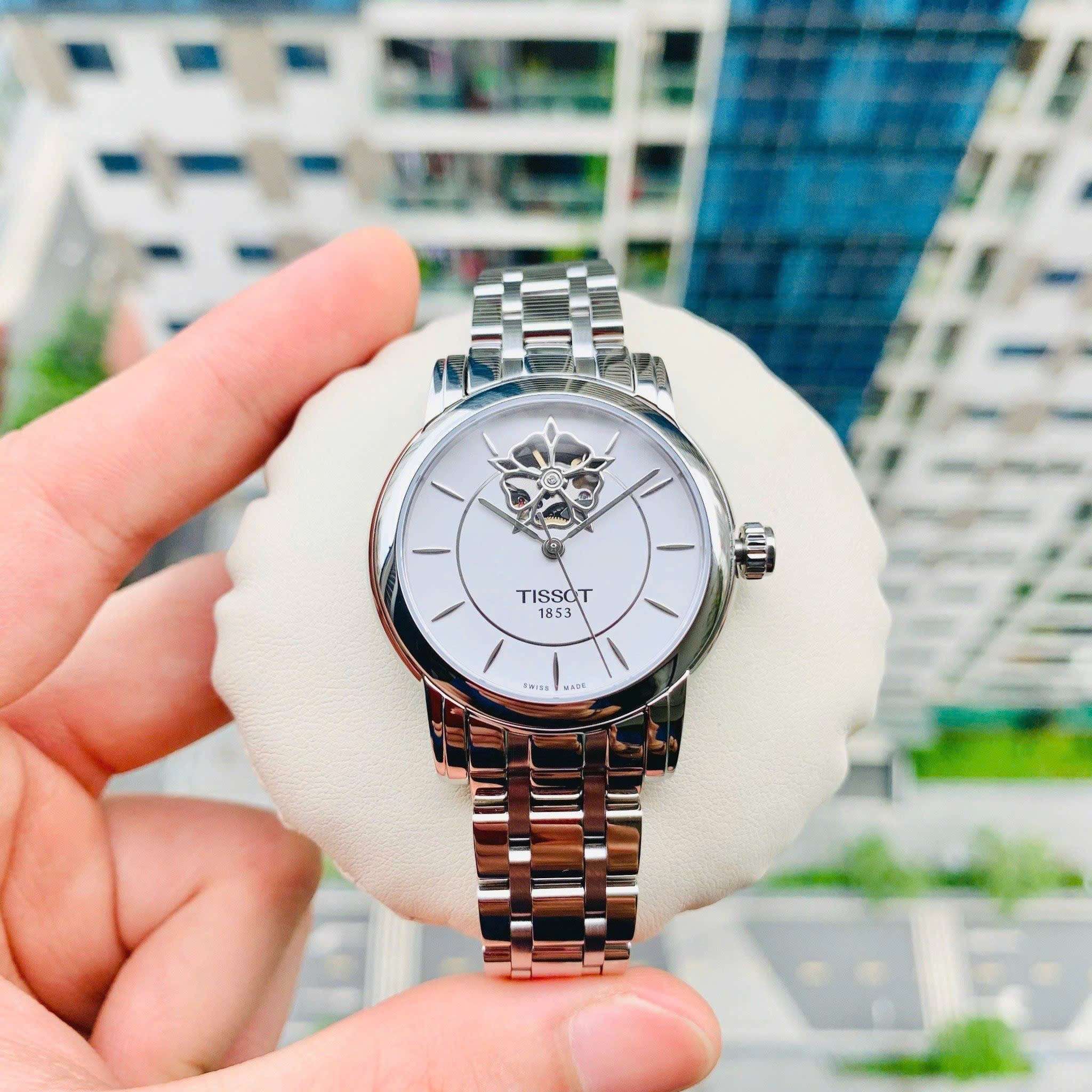 Đồng Hồ Nữ Tissot T050.207.11.011.04 Powermatic 80 Size 35 Lady Heart White Hoạ Tiết Bông Hoa
