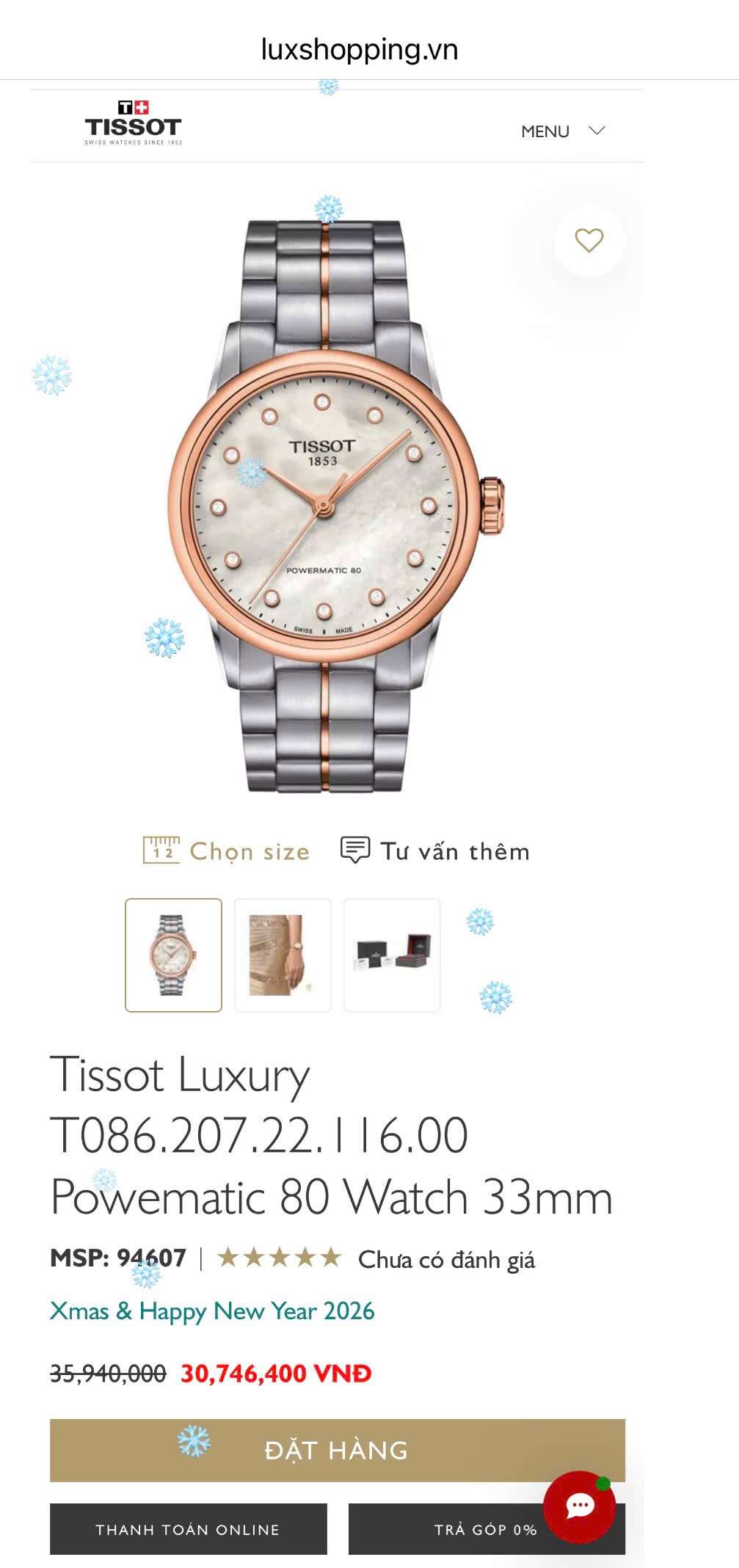 Đồng Hồ Nữ Tissot T086.207.22.116.00 Luxury Powermatic 80 Size 33 Diamond Sapphire